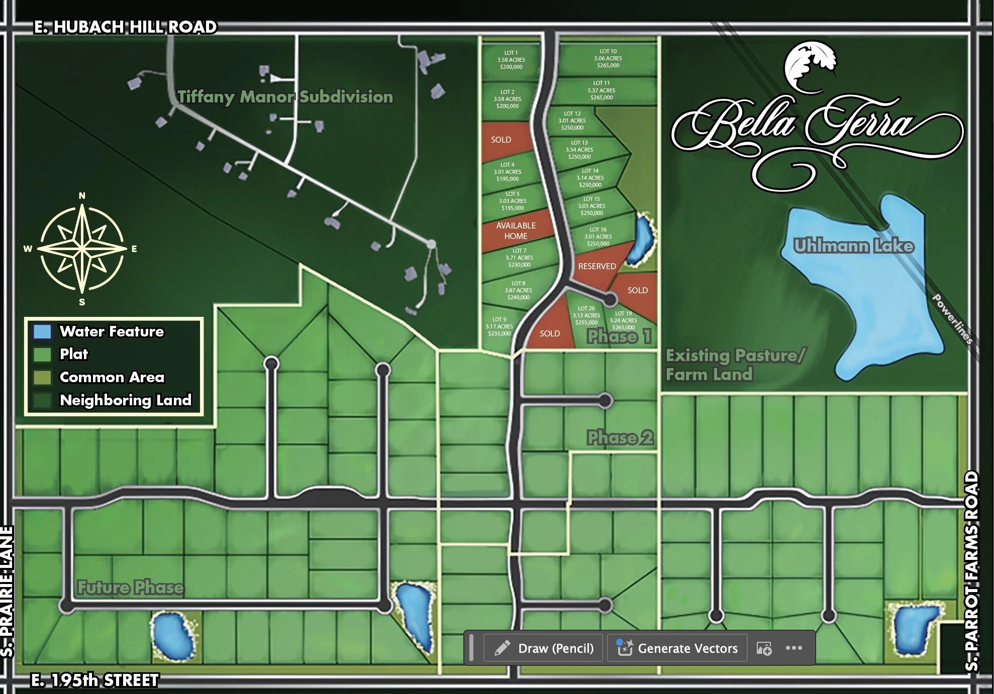Bella Terra offers high-speed internet, natural gas, trash service, high-speed fiber optics, snow removal and lower property taxes. This new luxury community knows how to give their residents the best possible experience. You’ll also have the option to build an approved detached outbuilding and/or swimming pool, as well as plenty of room for outdoor recreational spaces.